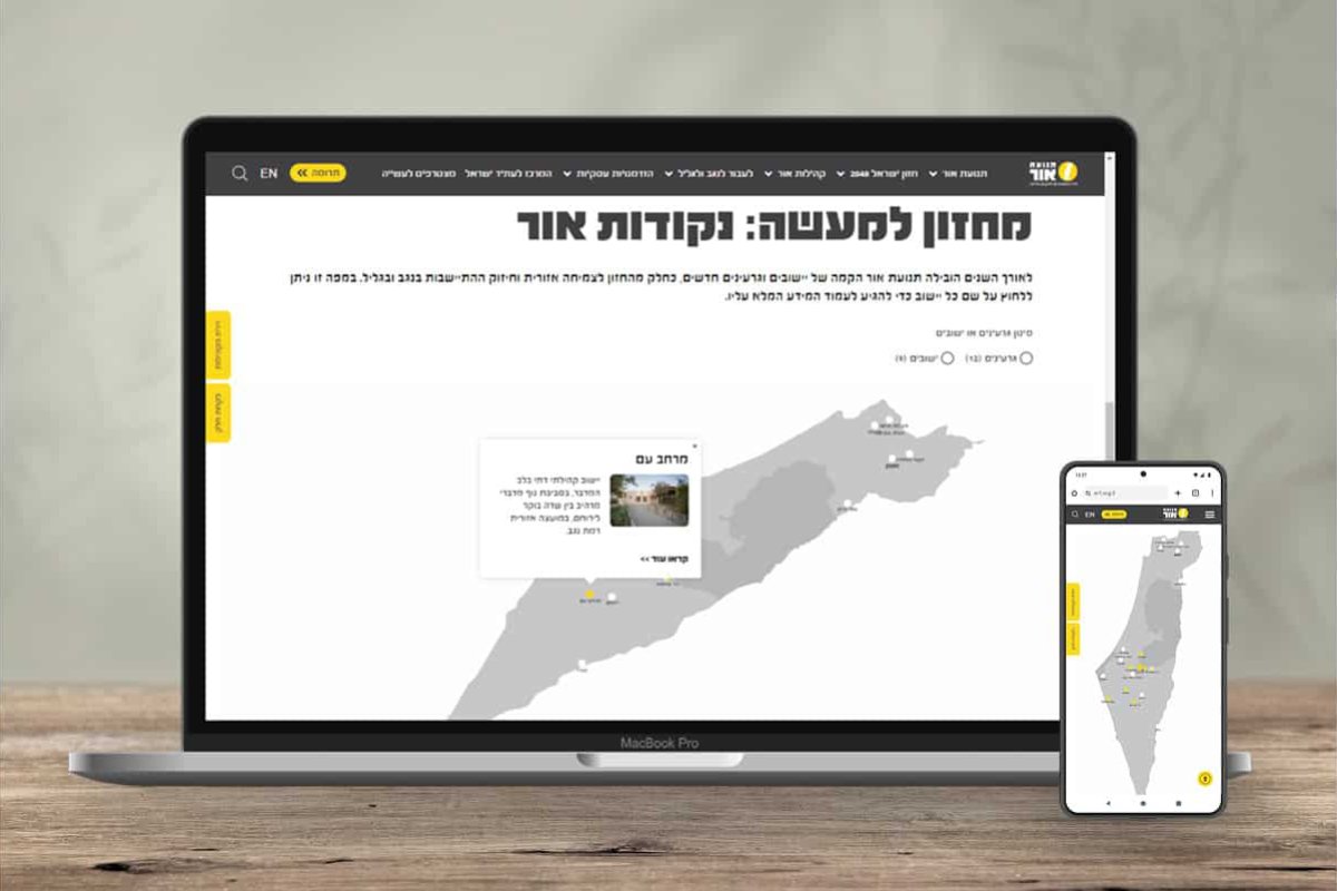 אפיון, עיצוב ובניית אתר תדמית ותוכן עבור "תנועת אור", כולל מפת ישובים אינטראקטיבית